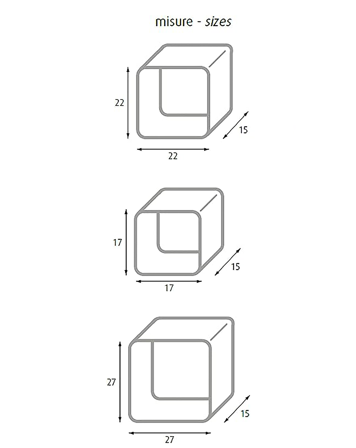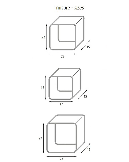 Mensola quadrata stondata in mdf set 3 pezzi KING HOME