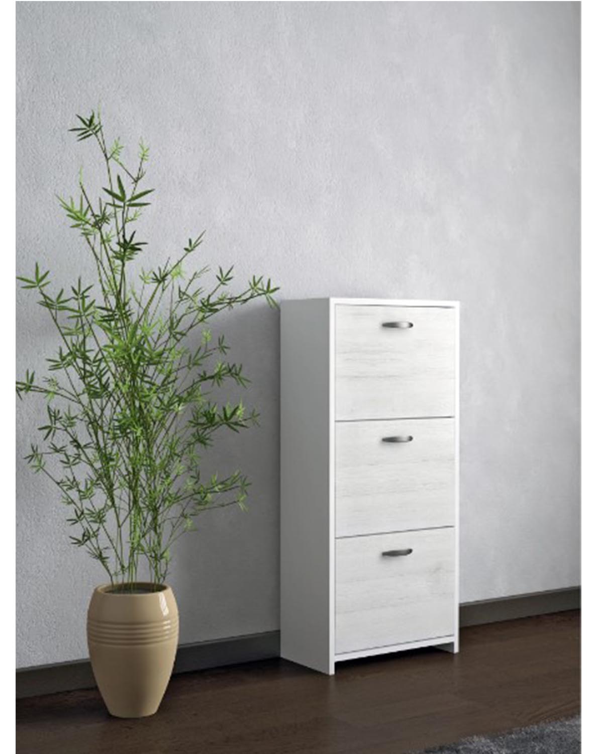 Scarpiera 3 ante doppia salvaspazio 851740 - Scarpiera doppia profondità, 3 ante salvaspazio (solo 50 cm di larghezza). - Montaggi a scomparsa (no viti a vista). - Tasche portascarpe in plastica lavabile (no tubi) - Colore Bianco/Ghiaccio - Peso: 21 - Dimensioni: 113x50x25 cm