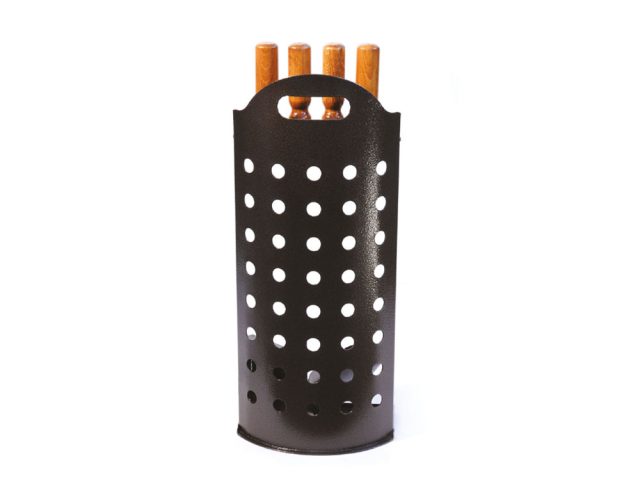 Set 5 pezzi da camino, con manici in legno di faggio, in ferro tondo da 12 mm verniciato nero. Design moderno, realizzato con struttura a parabola semicircolare con ampio intaglio “sfere” decorativo; impugnature ergonomiche in legno trattato; indispensabile per utilizzare camini e stufe a legna. Supporto semicircolare per riporre ordinatamente gli attrezzi; pinza a molla per afferrare e riposizionare tronchetti anche ardenti; scopetta con setole in pvc per rimuovere cenere; paletta in ferro per rimuovere cenere e residui ardenti; attizzatoio per smuovere tizzoni ardenti e ravvivare fiamma; ampio manico ricavato dall’intaglio della struttura, per facilitare lo spostamento dell’intero gruppo.