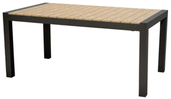 Tavolo da esterno allungabile, realizzato in alluminio con piedino regolabile in altezza. E' dotato di una struttura in alluminio verniciato, piano a doghe di dimensioni 9.5 mm, in polywood di colore legno e una prolunga estraibile da 70 cm con meccanismo perimetrale. Grazie a questo movimento il tavolo può ospitare dalle quattro alle otto persone.